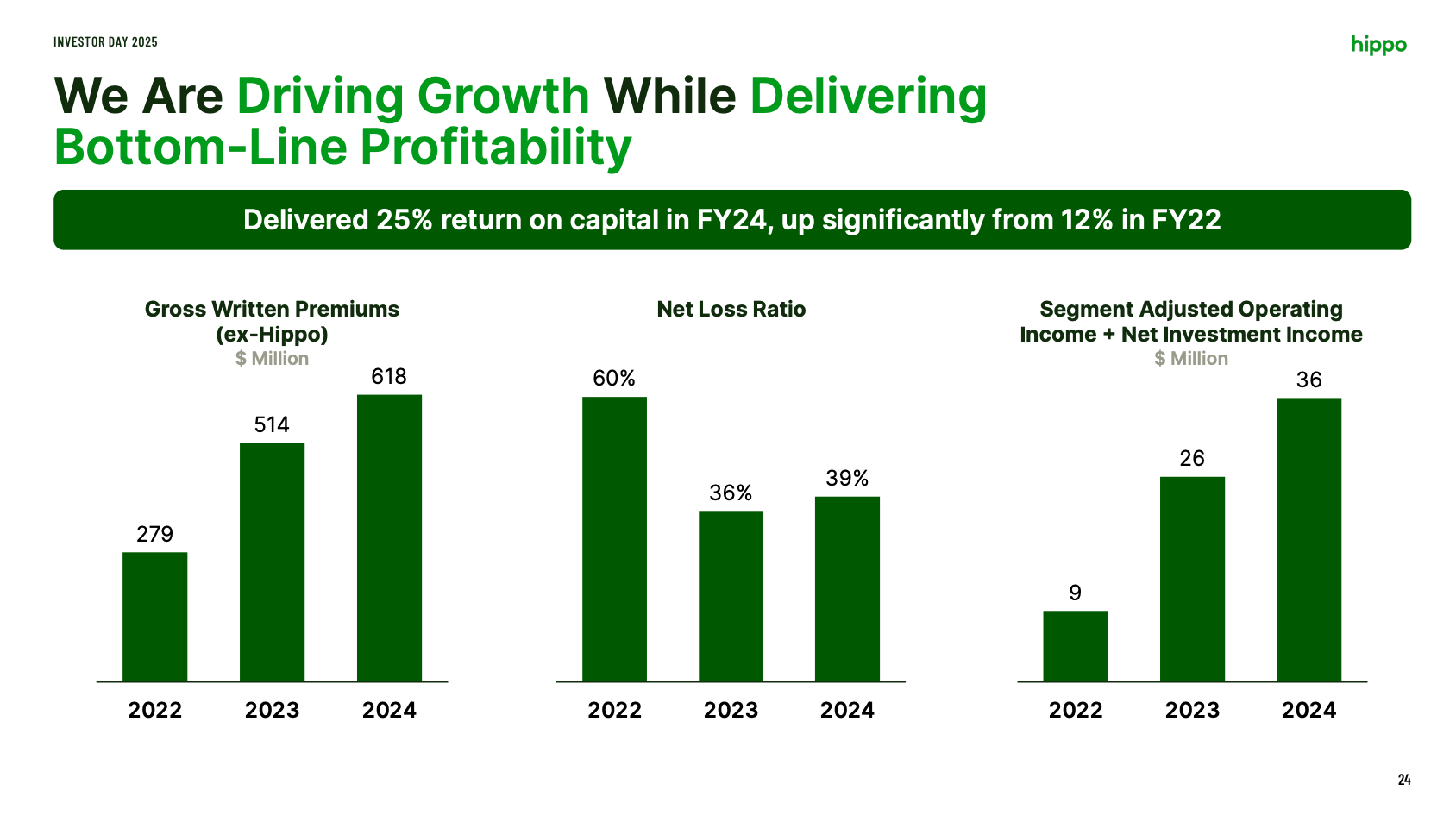 The real shift comes in profitability. After posting a $65 million net loss last year, Hippo now guides for positive net income between $35 and $39 million, helped by the gain on the Westwood deal. Adjusted net income should hover around break-even (–$4 to 0).